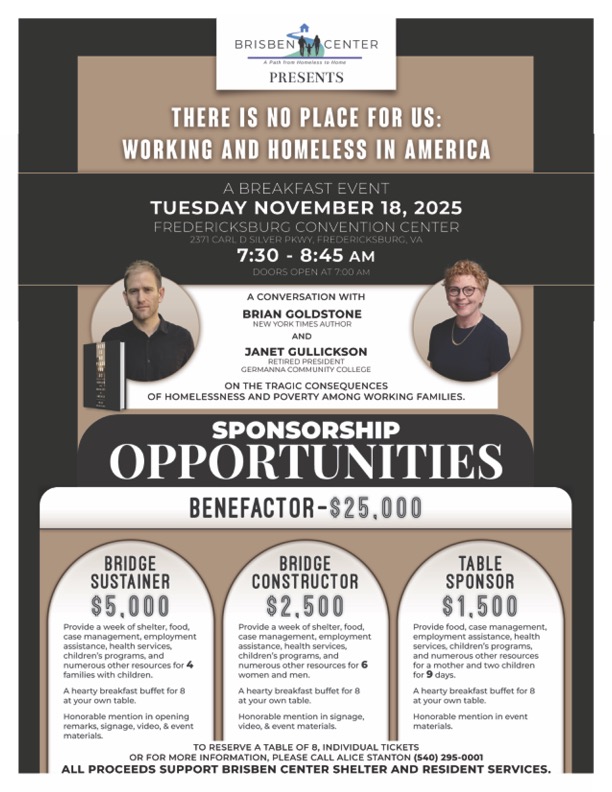 For more information and to reserve your place, email or phone Alice Stanton at 540-899-9853, ext. 114.